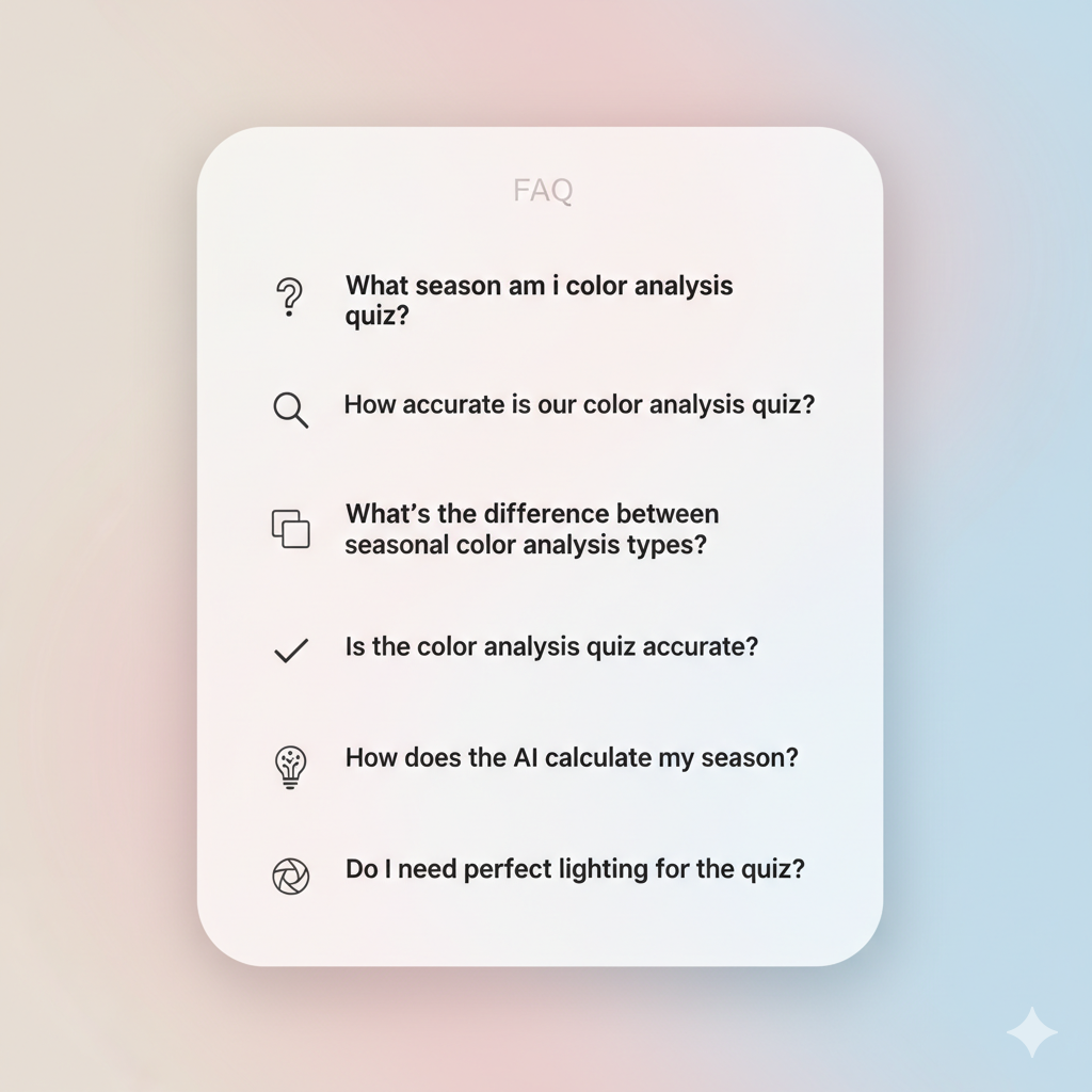 Welcome to our FAQ page — your go-to spot for straight answers about seasonal color analysis. We know diving into color seasons can bring up questions, and we’re here to clear things up in plain, friendly language.